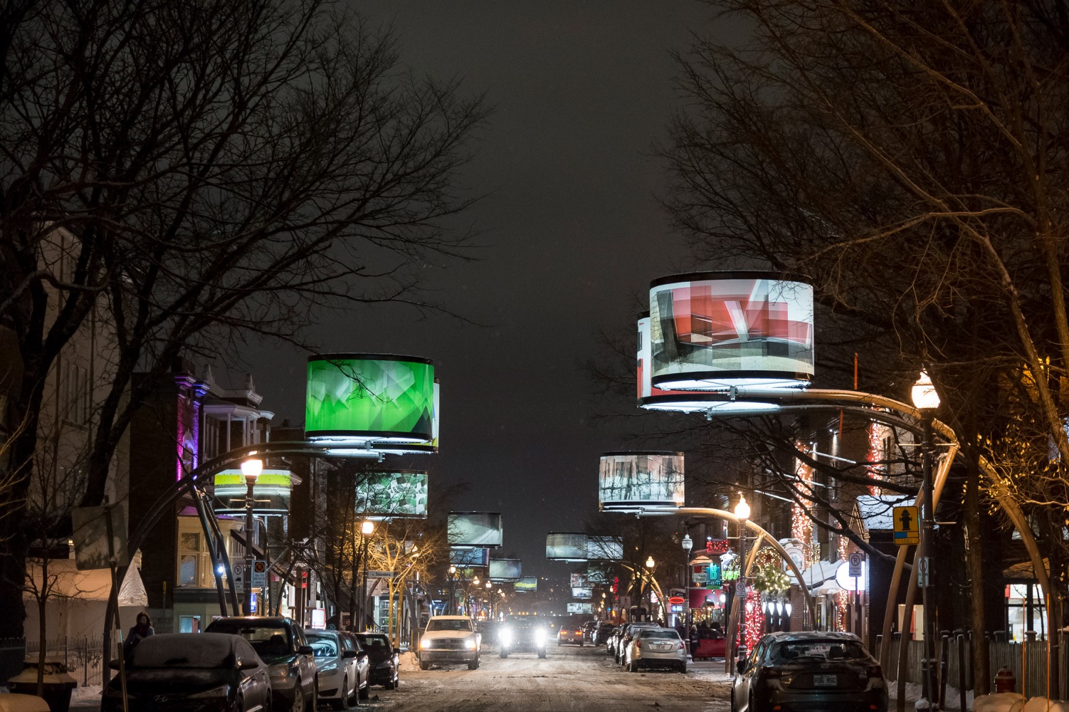 Tout comme pour la première édition de Lumière sur l’art, c’est une collection d'œuvres puisées dans la collection du Musée national des Beaux-Arts que l’on retrouve le long de l’avenue Cartier : les œuvres abstraites de Rita Letendre et Jacques Hurtubise. Colorée, lumineuse, éclatée sont des adjectifs qui décrivent très bien cette édition 2016-2017!